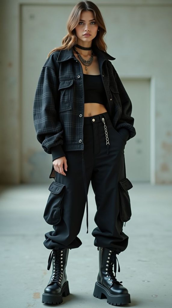 - Black emo pants give you that sharp, alternative edge that’s perfect for a festival crowd.